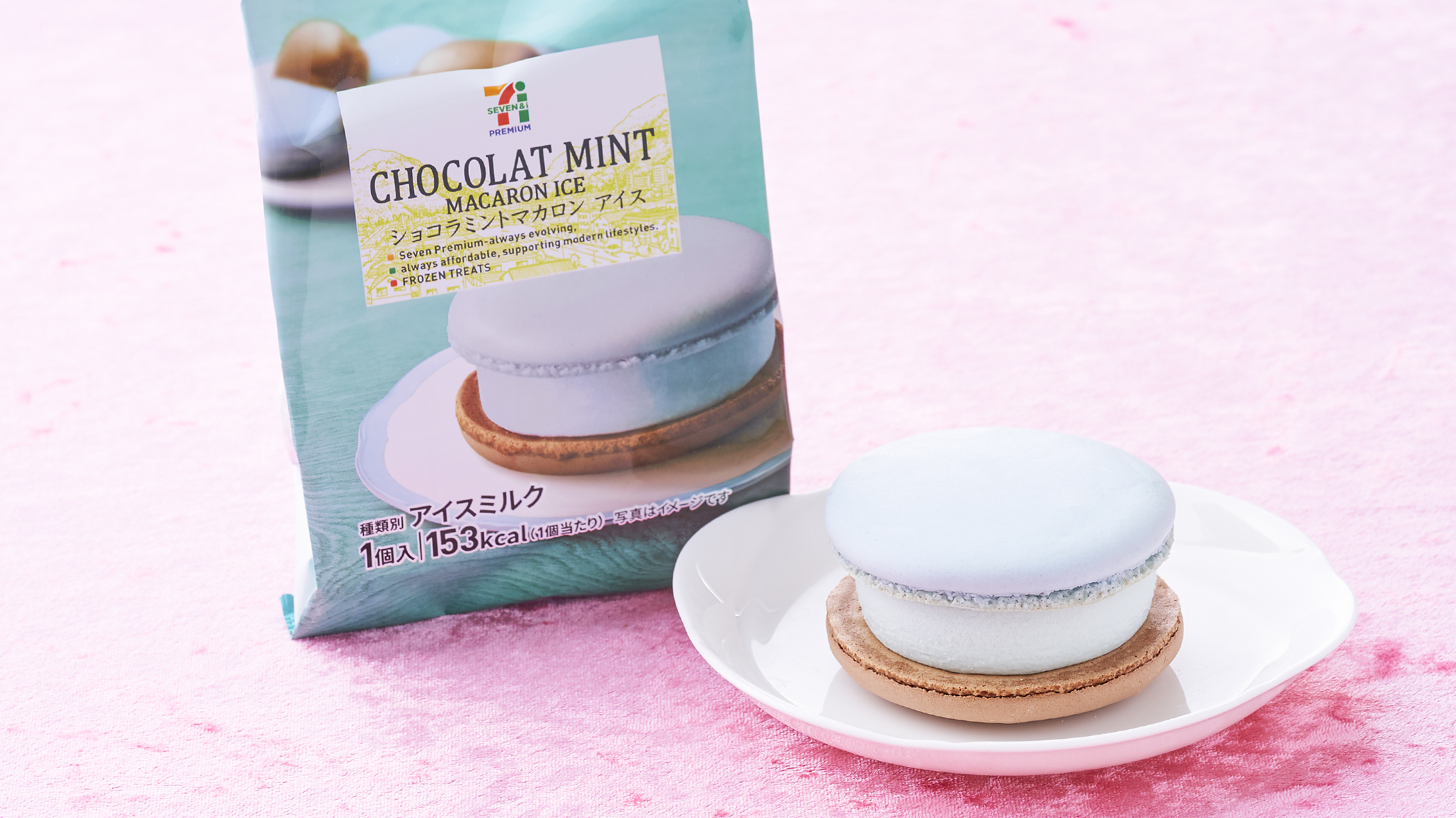 初のバイカラーマカロンアイス登場『セブンプレミアム ショコラミントマカロンアイス』等発売