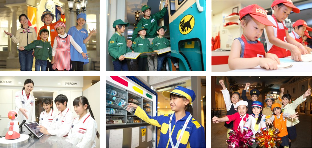 「キッザニア東京(東京都江東区豊洲)」と「キッザニア甲子園(兵庫県西宮市甲子園)」は、それぞれ2006年、2009年に開業した、3歳~15歳の子ども達を対象とする職業・社会体験施設です。現実社会の約3分の2サイズの街並みには、実在する企業がスポンサーとなった約60のパビリオンが立ち並び、その中で約100種類のアクティビティを体験することができます。子ども達は仕事体験をすることで、キッザニア内で流通している専用通貨「キッゾ」を給料として手に入れることができ、キッザニア内で買い物やサービスを受けることができます。また、銀行での口座開設やATMでの引き出しなどリアルな経済活動を体験することもできます。