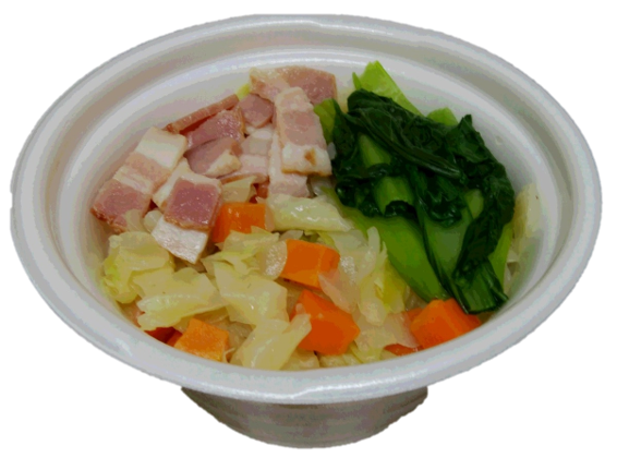 ・野菜は、浜松市の出荷量が全国トップクラスの青梗菜をメインに、人参、キャベツ、玉ねぎを食べやすい大きさにカットして使用。