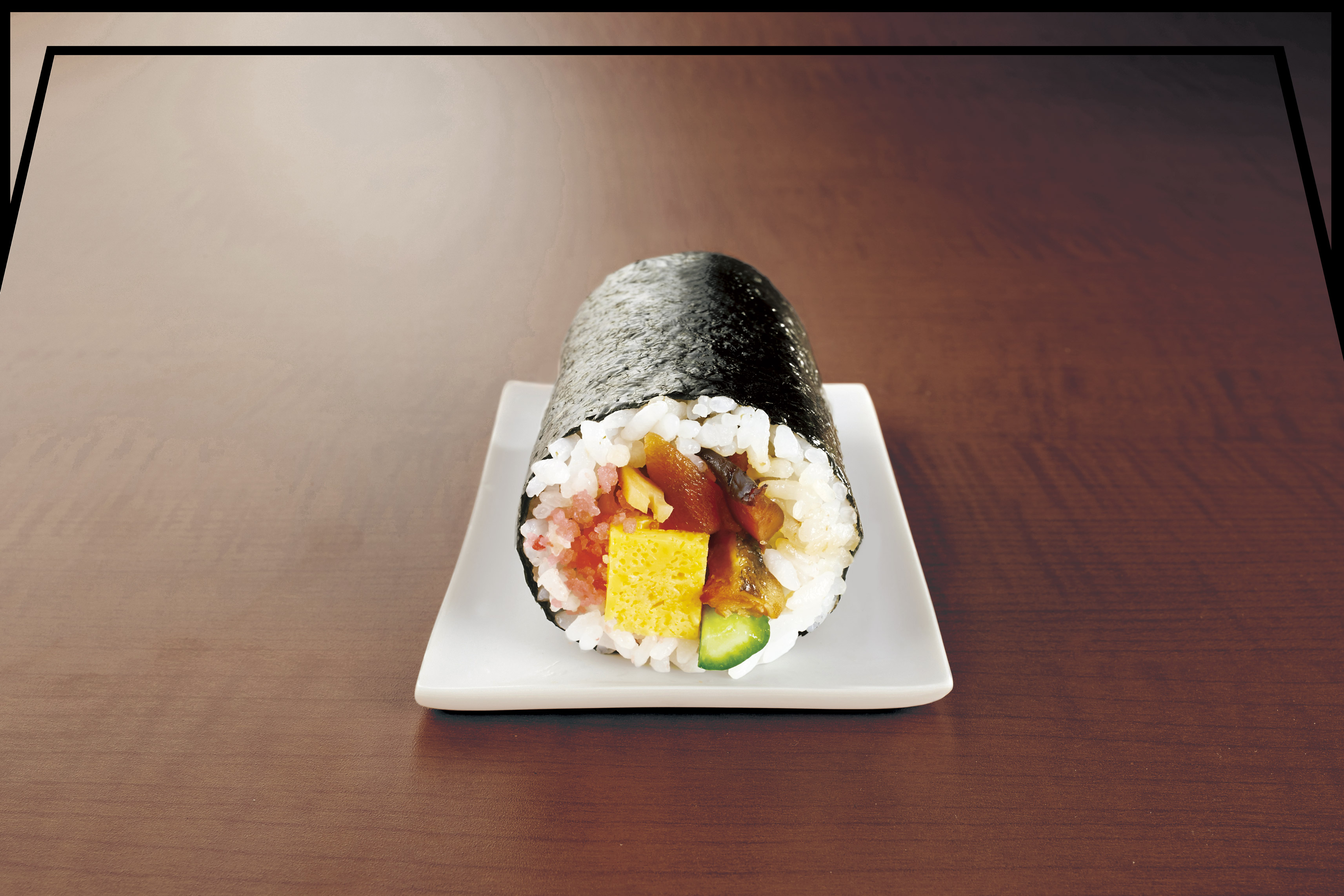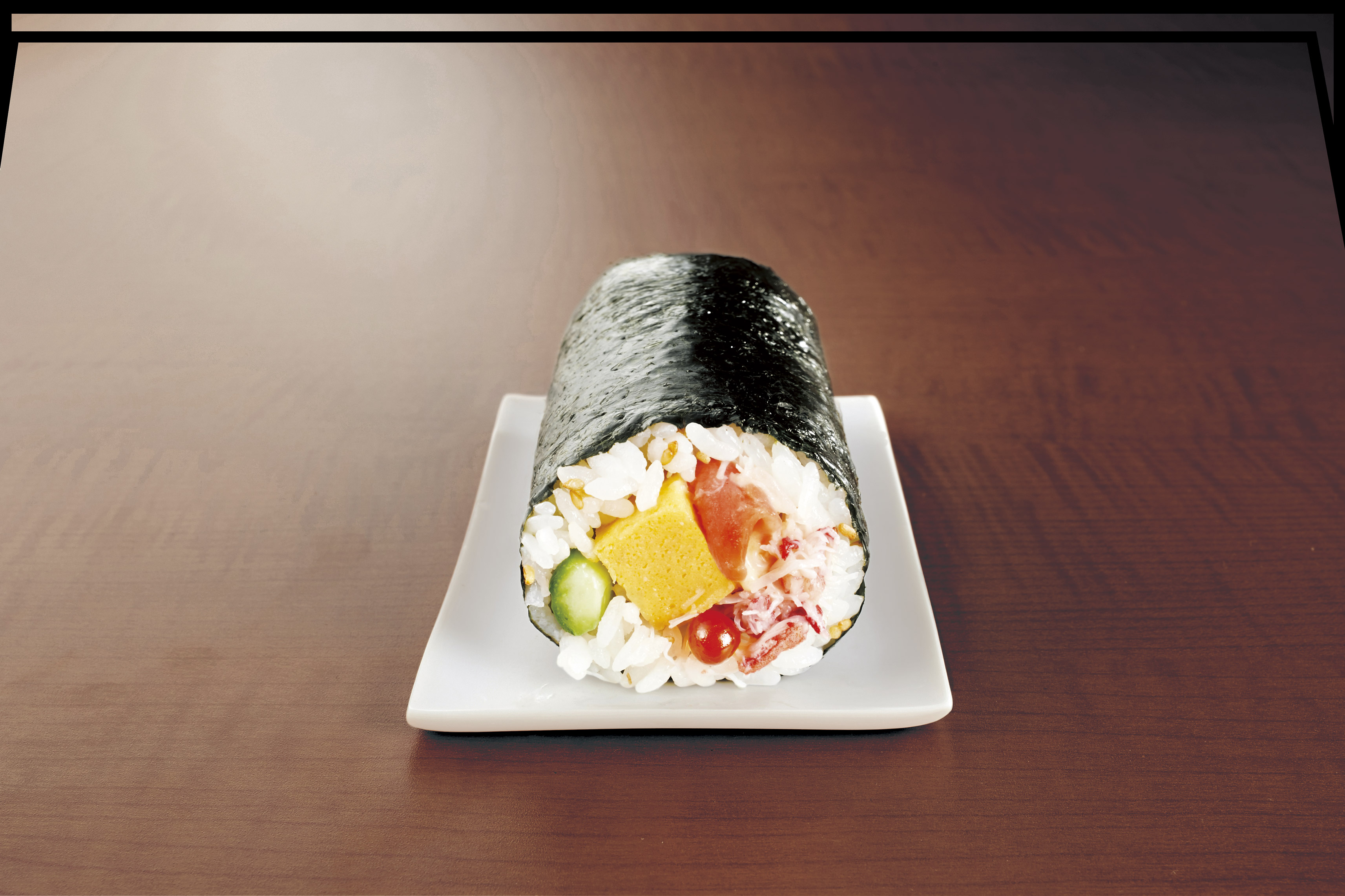 【商品特長】:七種類の具材を巻き込んだ定番商品。