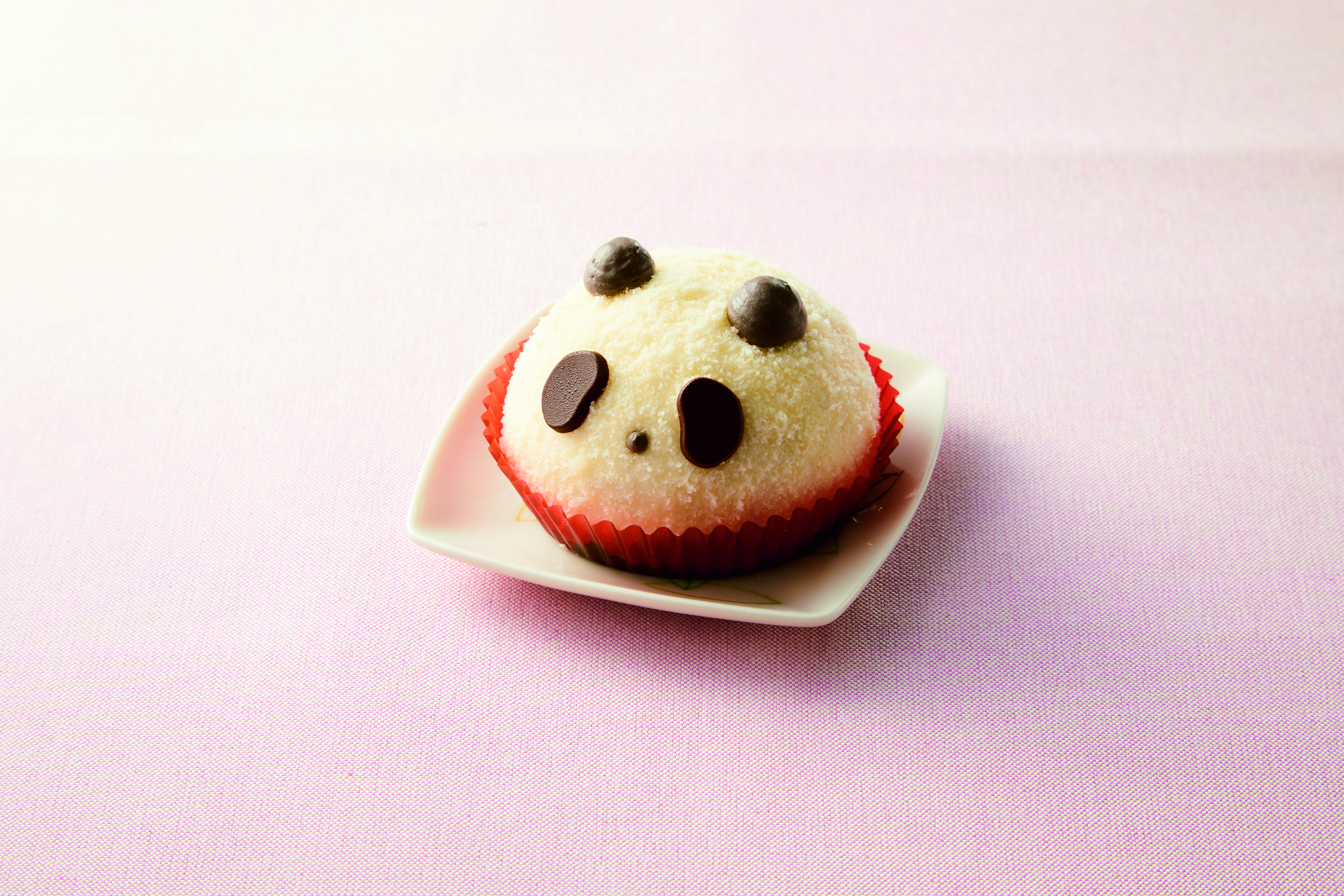 ・ココアスポンジにチョコクッキー、いちごソース、いちごクリームを重ね、お子様に人気のパンダの顔を表現しました。