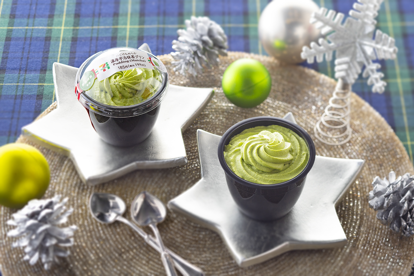 ・クリスマスカラーの緑を和洋折衷のスイーツで表現。