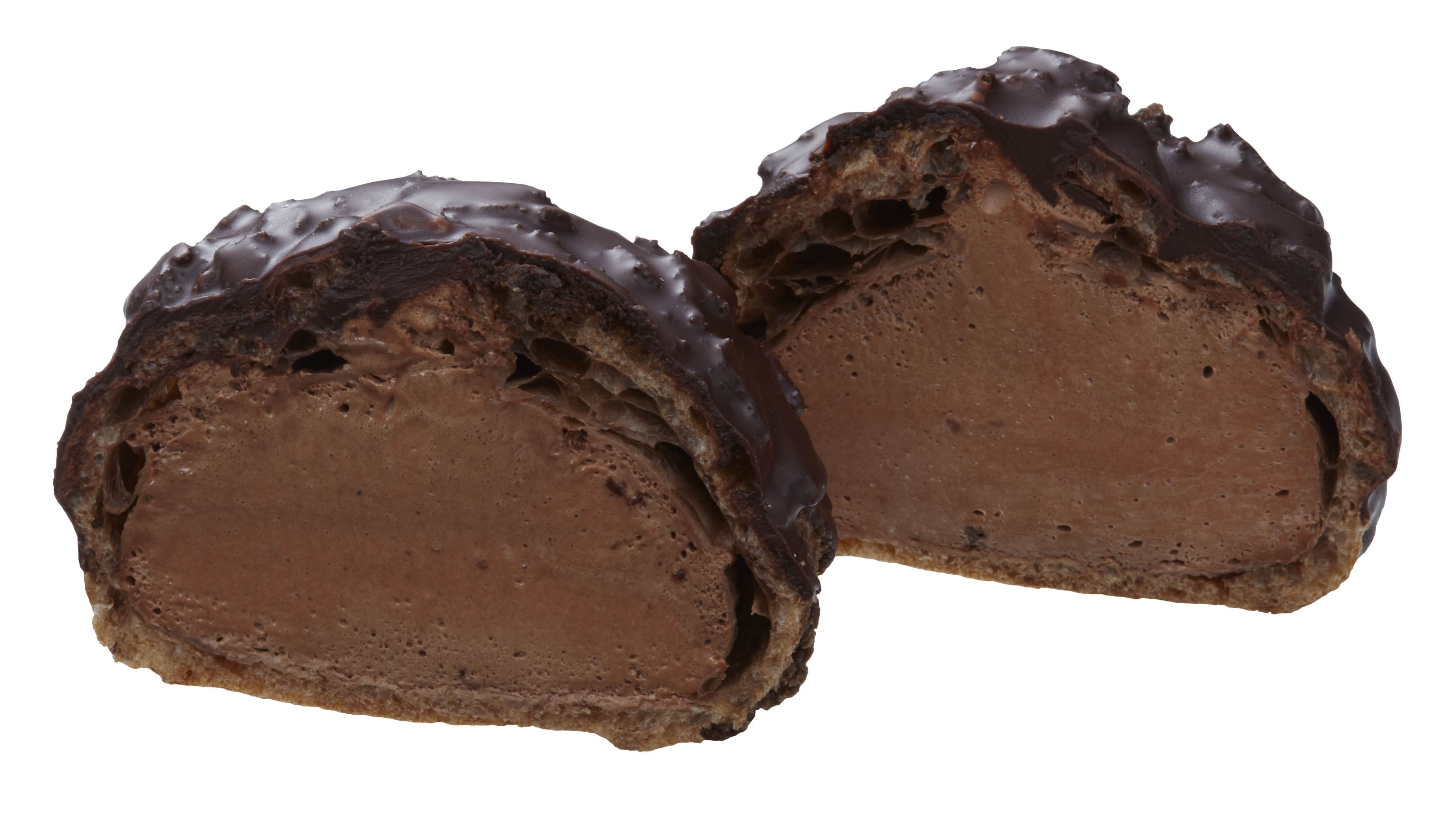 特長 :クッキー生地にチョコレートをかけたザクザクした食感のシュー生地に、カカオ感の強い濃厚な味わいのチョコクリームをたっぷり詰めた仕立て。
