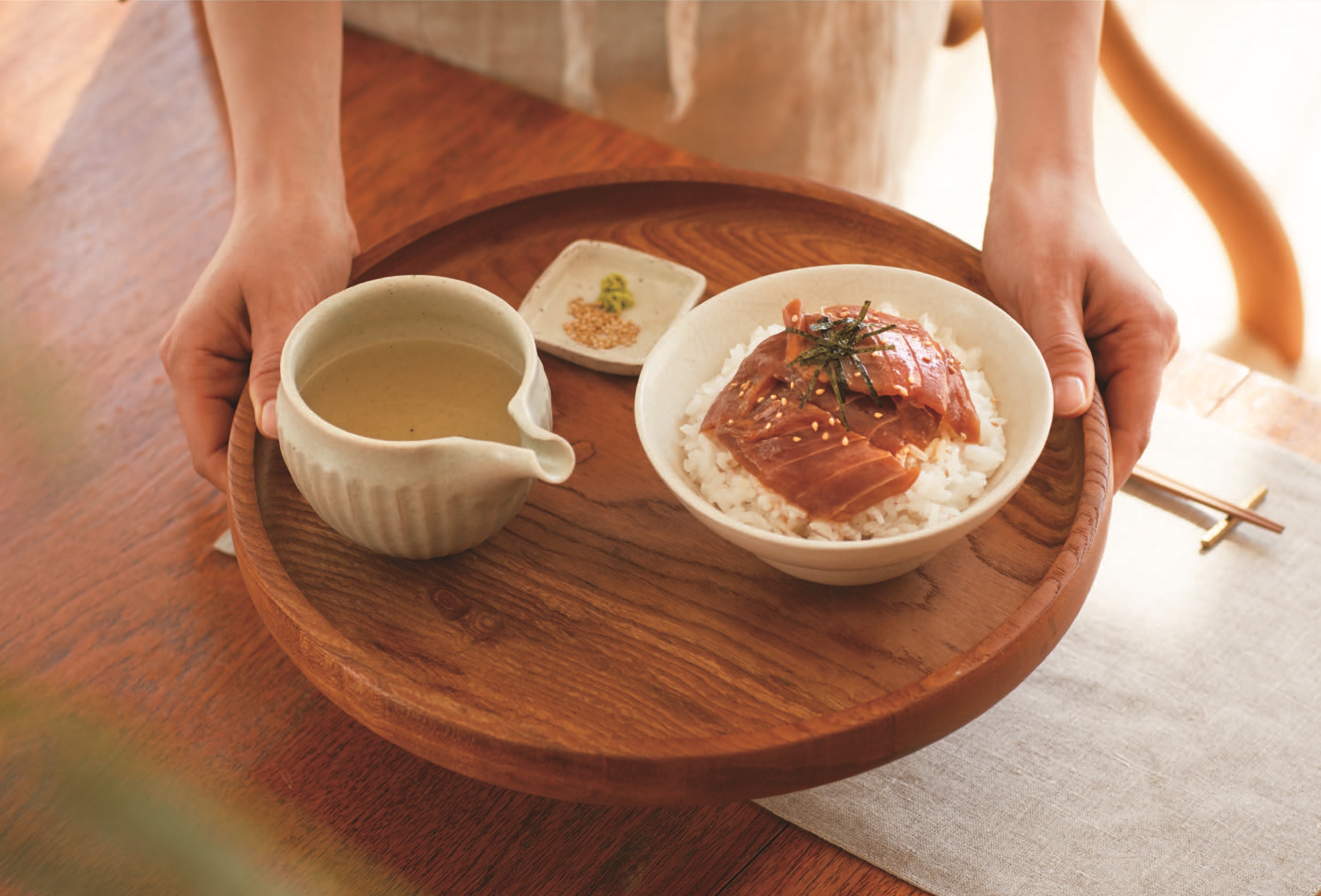 ◆1杯目はヅケ丼、2杯目は付属の出汁でお茶漬けにして楽しめる。