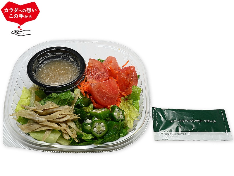 ・オクラ、トマト、ゴボウ等、7種の野菜に相性の良いオリーブオイルを別添。