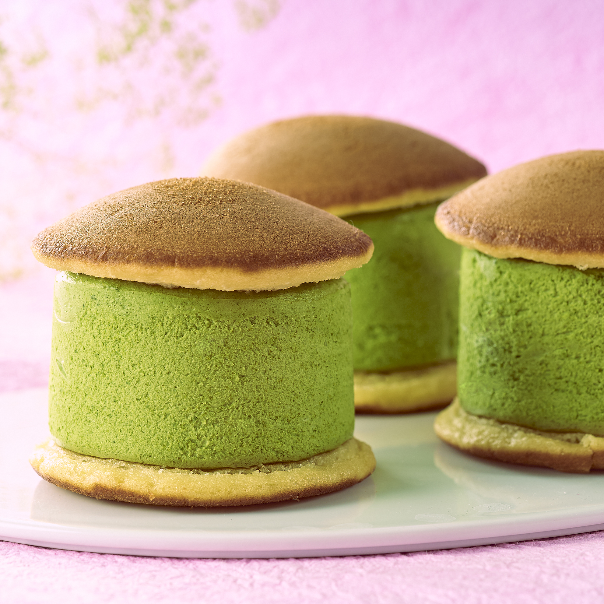 ◇たっぷりの抹茶味のクリームをどら焼で挟んだ人気のシリーズ。