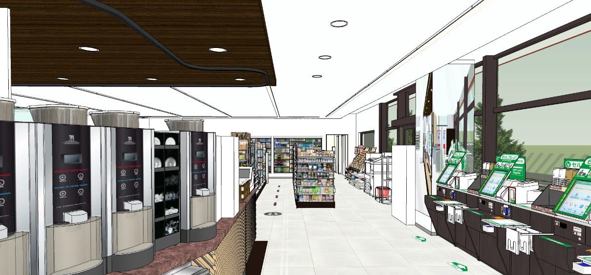 12月に開店する本店舗では、お客様にとって「心地よく使いやすいお店」、加盟店オーナー様にとって「安心して経営できるお店」、そこで働く従業員様にとっては「もっと働きやすいお店」を目指し、これまでに開店した実験店舗での成果も加えながら、最新の技術や設備の実験を行います。