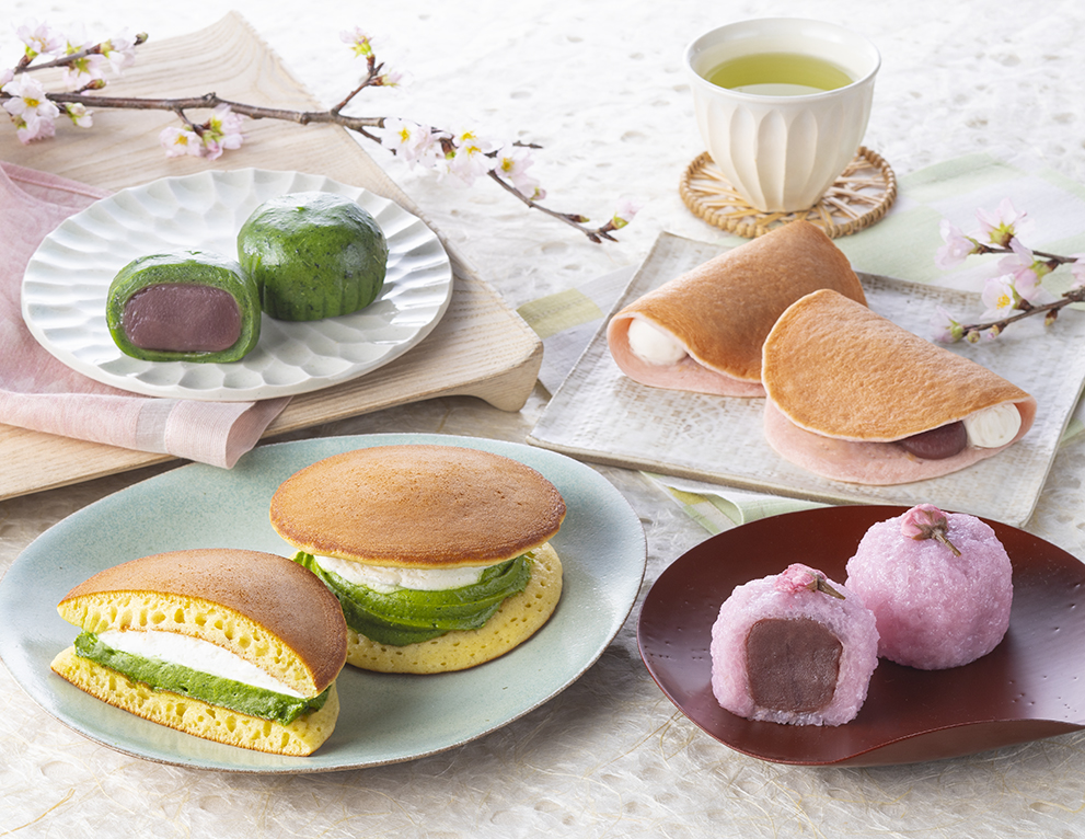 本フェアでは、立春を迎え、春の兆しが見え始める時期に合わせ、見た目と味わいで春を感じられるオリジナルスイーツ4品をご用意しました。しっとりした食感に仕上げた特製のどら焼き生地で、香り高い宇治抹茶を使用した抹茶クリームとコクのあるホイップクリームを挟んだ「宇治抹茶クリーム&ホイップ生どら」や、道明寺粉を使用し、米の食感を感じられる生地でなめらかなこし餡を包んだ「北海道産小豆使用 桜もち」等、春を先取りできる春色のスイーツで、春らしさを演出いたします。