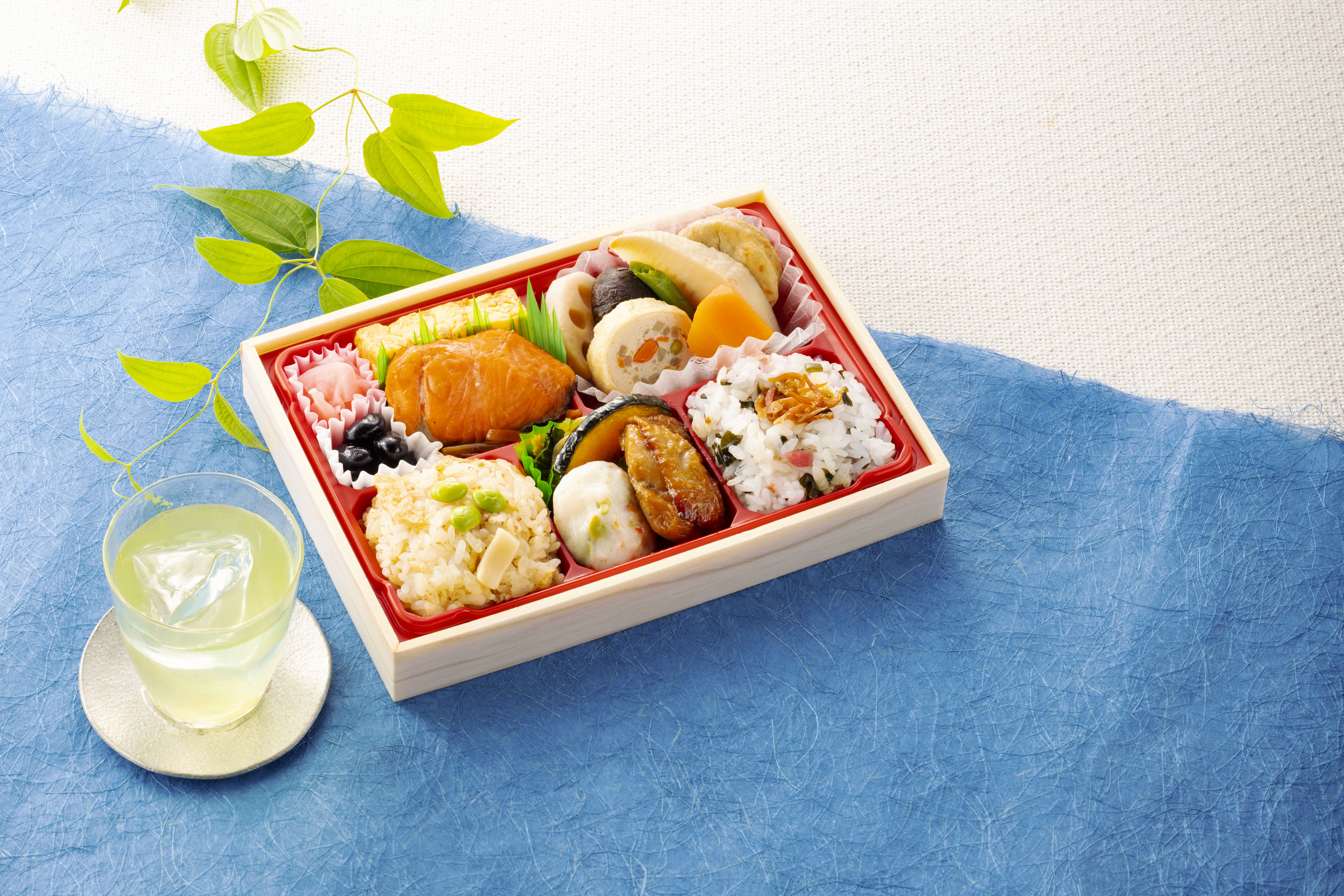 ※上記商品は、プラス40円(税込43円)でいろどりまぜ御飯を「せいろ蒸し赤飯」に変更できます。