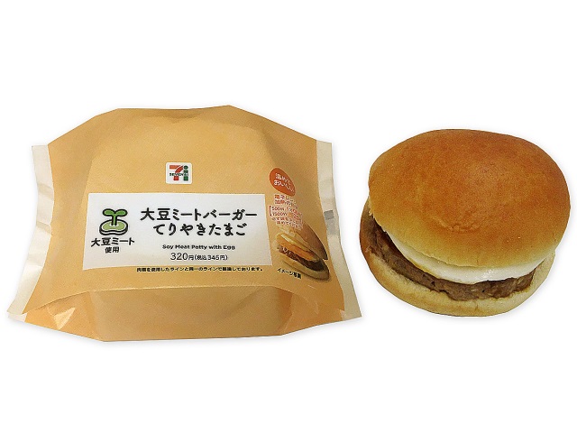 ☞大豆ミートのパティに、甘辛いてりやきソースで味付けし、たまごを盛り付けました。