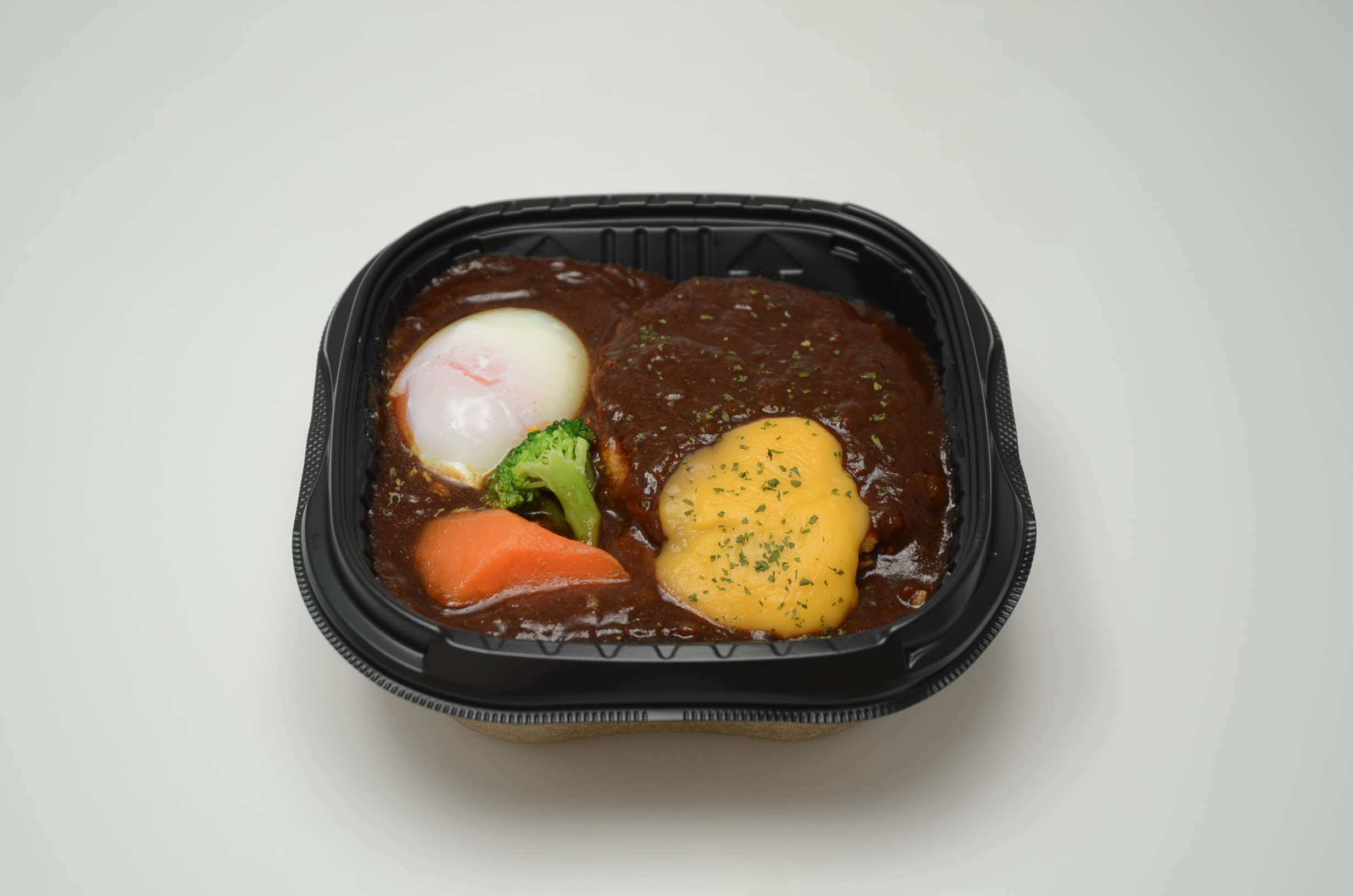 ☞大豆ミートを使用した食感の良いハンバーグに、じっくり煮込んだソースを合わせました。