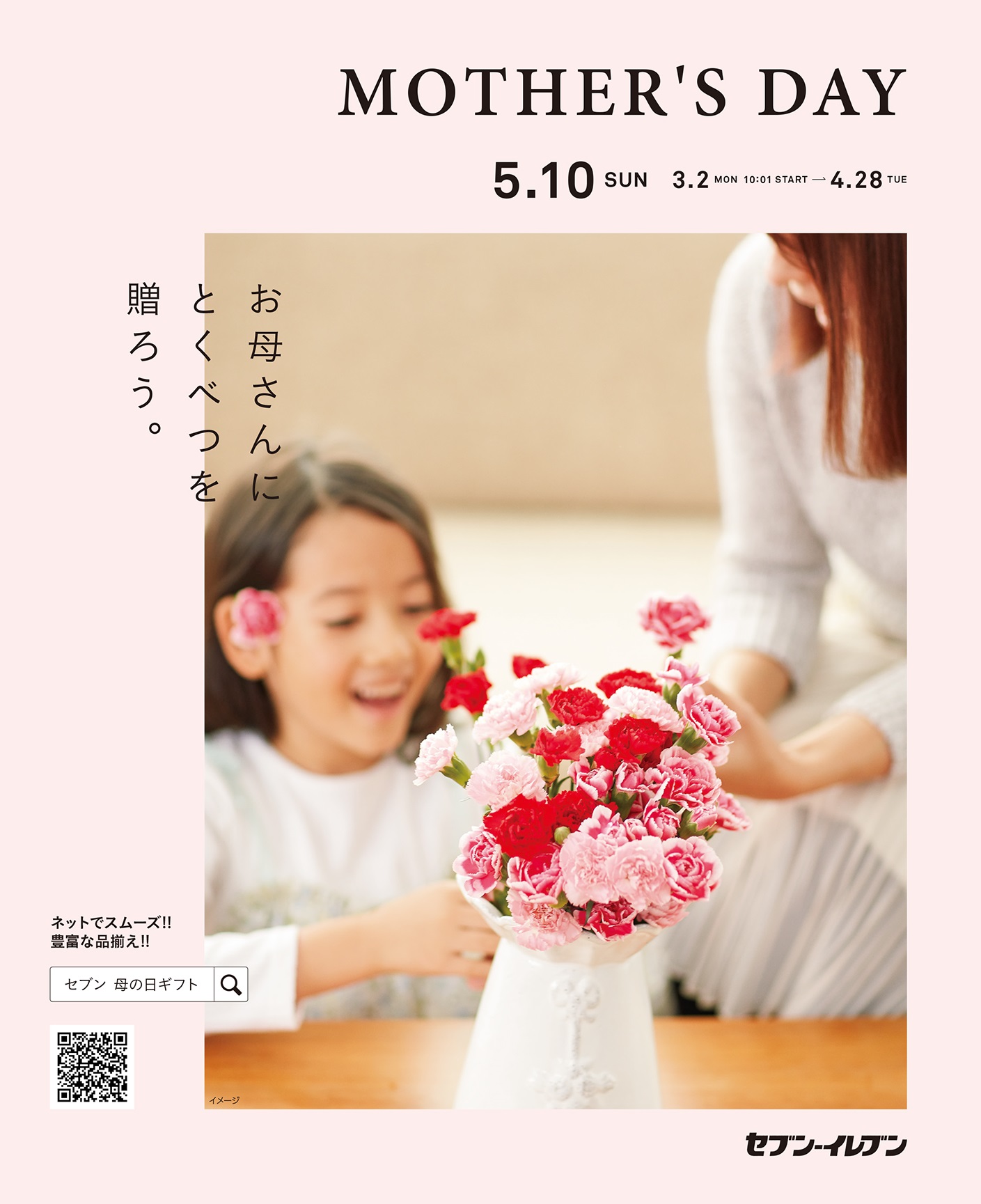 株式会社セブン‐イレブン・ジャパン(本社:東京都千代田区、代表取締役社長:永松 文彦)は、3月2日(月)より、「2020年母の日・父の日ギフト」の受付を、全国のセブン‐イレブン20,964店舗(2020年1月末現在)と、セブン&アイのネットショッピングサイト「オムニ7」にて開始いたします。