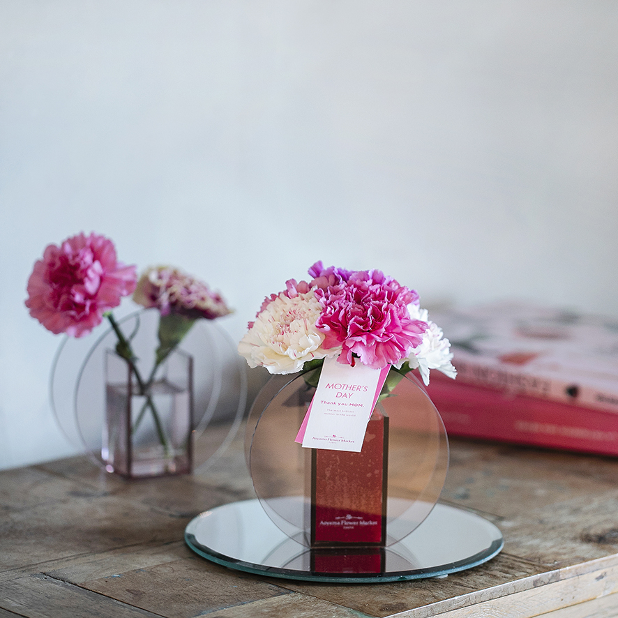 青山フラワーマーケットが得意とする、手軽に飾れるアレンジメントフラワーを 母の日用にお届け。