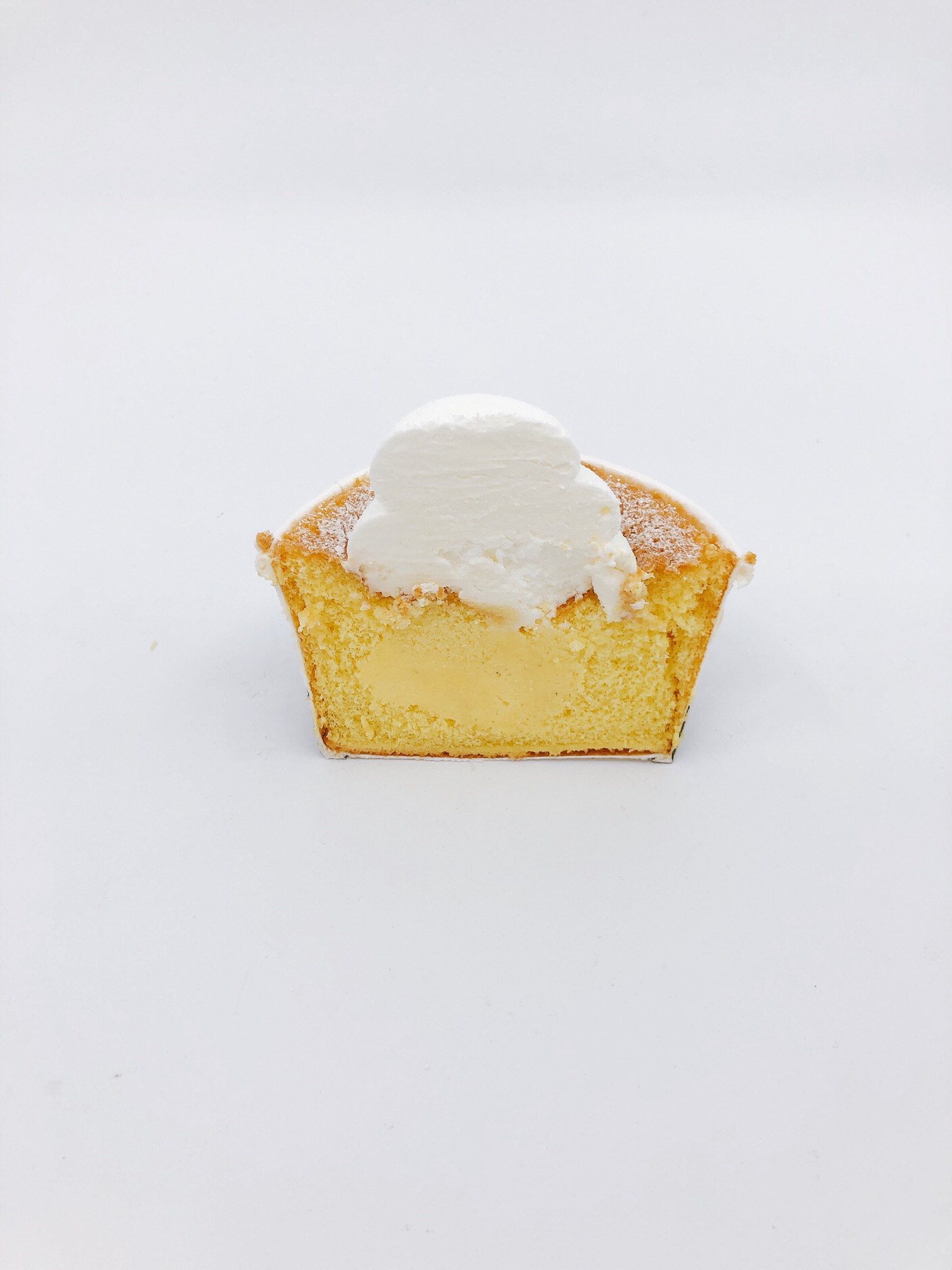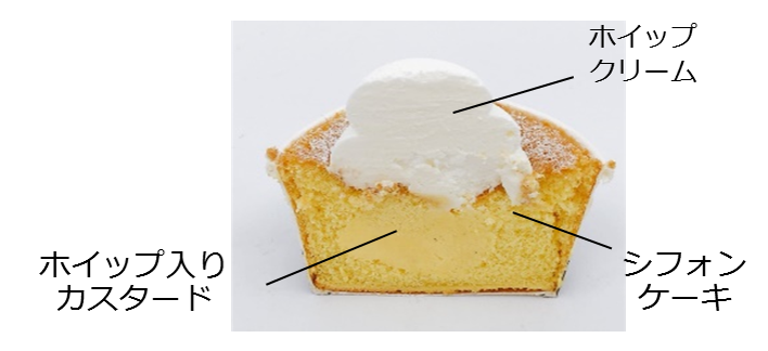 ・シフォン生地の中には、なめらかなホイップクリーム入りのカスタードを詰め込んだ、満足感のある商品。