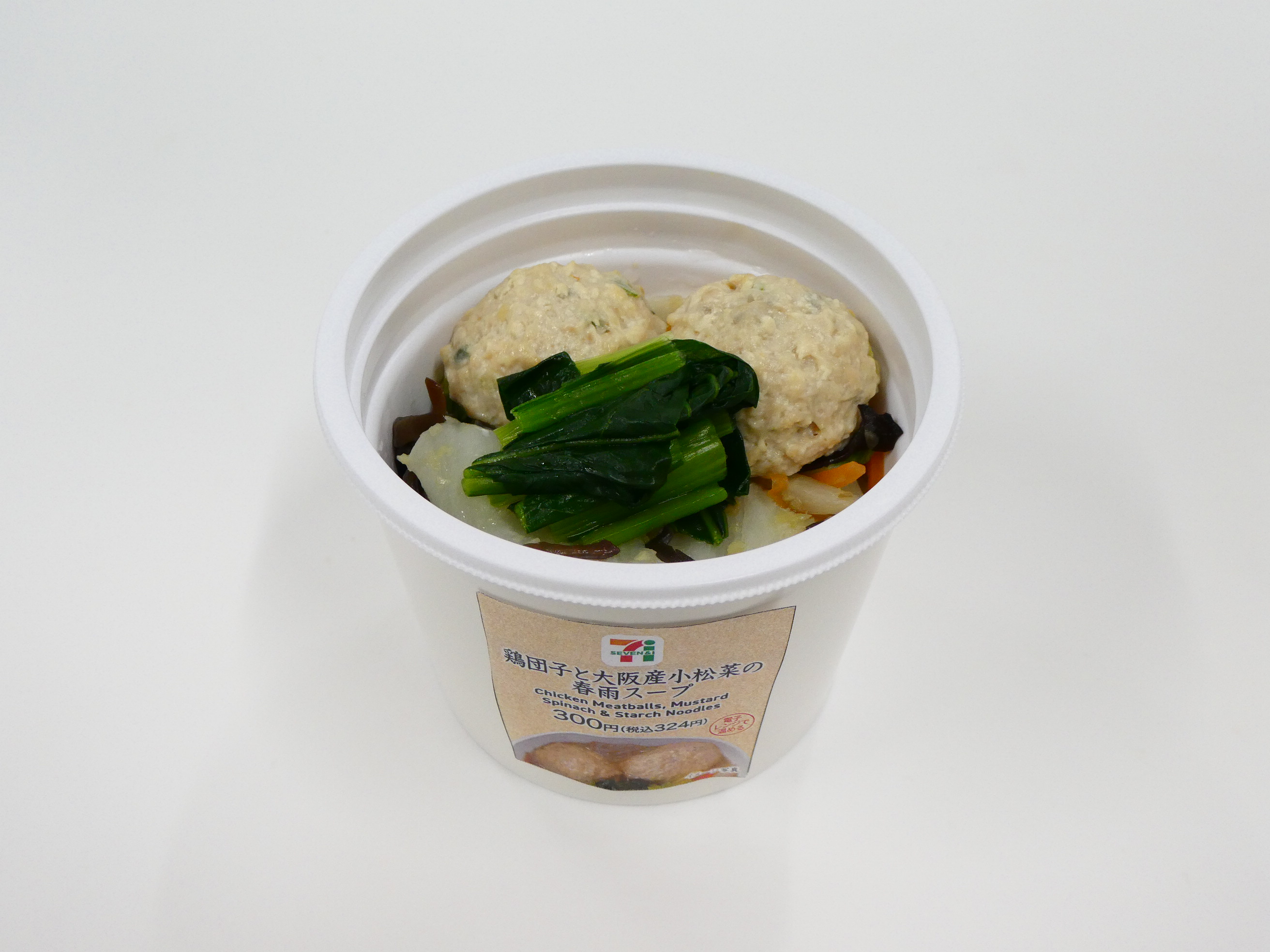 特 長:鶏団子と春雨、白菜、人参、きくらげ等の具材に大阪産小松菜を彩りよく盛り付けた商品。