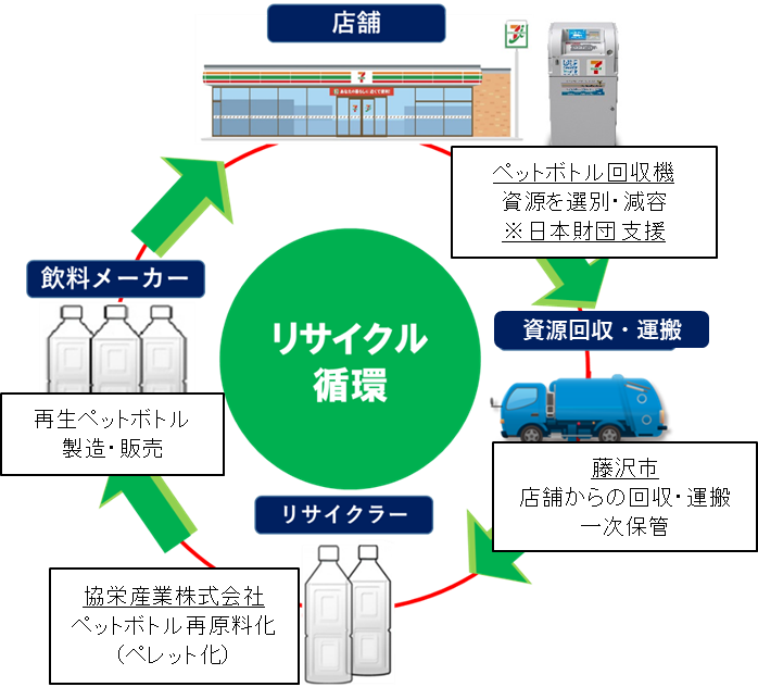 藤沢市(市長:鈴木 恒夫)と日本財団(東京都港区、会長:笹川 陽平)、株式会社セブン‐イレブン・ ジャパン(東京都千代田区、代表取締役社長:永松 文彦)は、限りある資源の有効な活用と海洋プラスチックごみ対策を目的としたペットボトル回収事業を開始いたします。