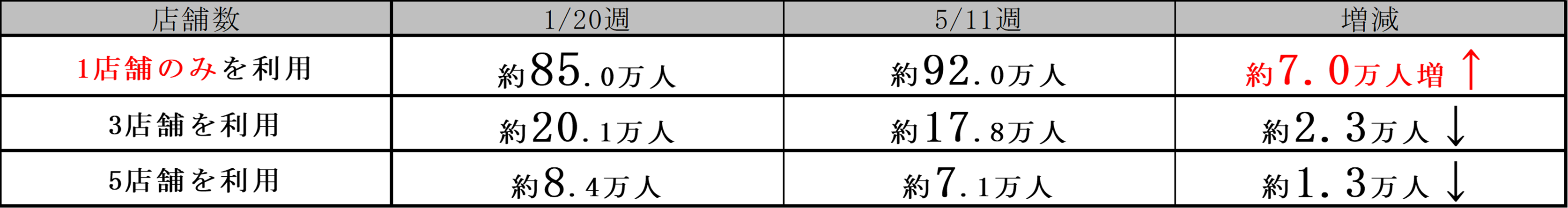 当社のnanacoデータでは、2020年1月20日週と2020年5月11日週で首都圏での1人当たりのセブン‐イレブンの利用店舗数を比較したところ、「1店舗のみ利用」が約7万人増加しました。また、直近8月度のデータでは客単価が昨年比で5%伸長しており、まとめ買いがされている傾向もあります。外出自粛の影響で特定の店舗のみでまとめ買い利用するようになったことが、利用頻度の減少に影響していると予想されます。