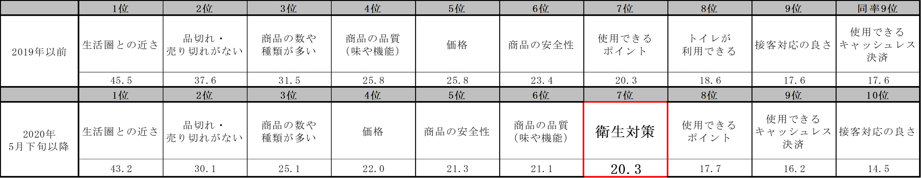 【トピック②】withコロナ時代のコンビニエンスストアを選ぶ基準の上位に「衛生対策」