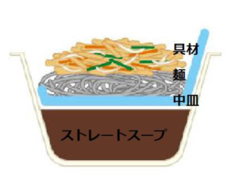 特長2)麺と具材を中皿に乗せることで、余分な水分移行がなくなり、食感が向上。