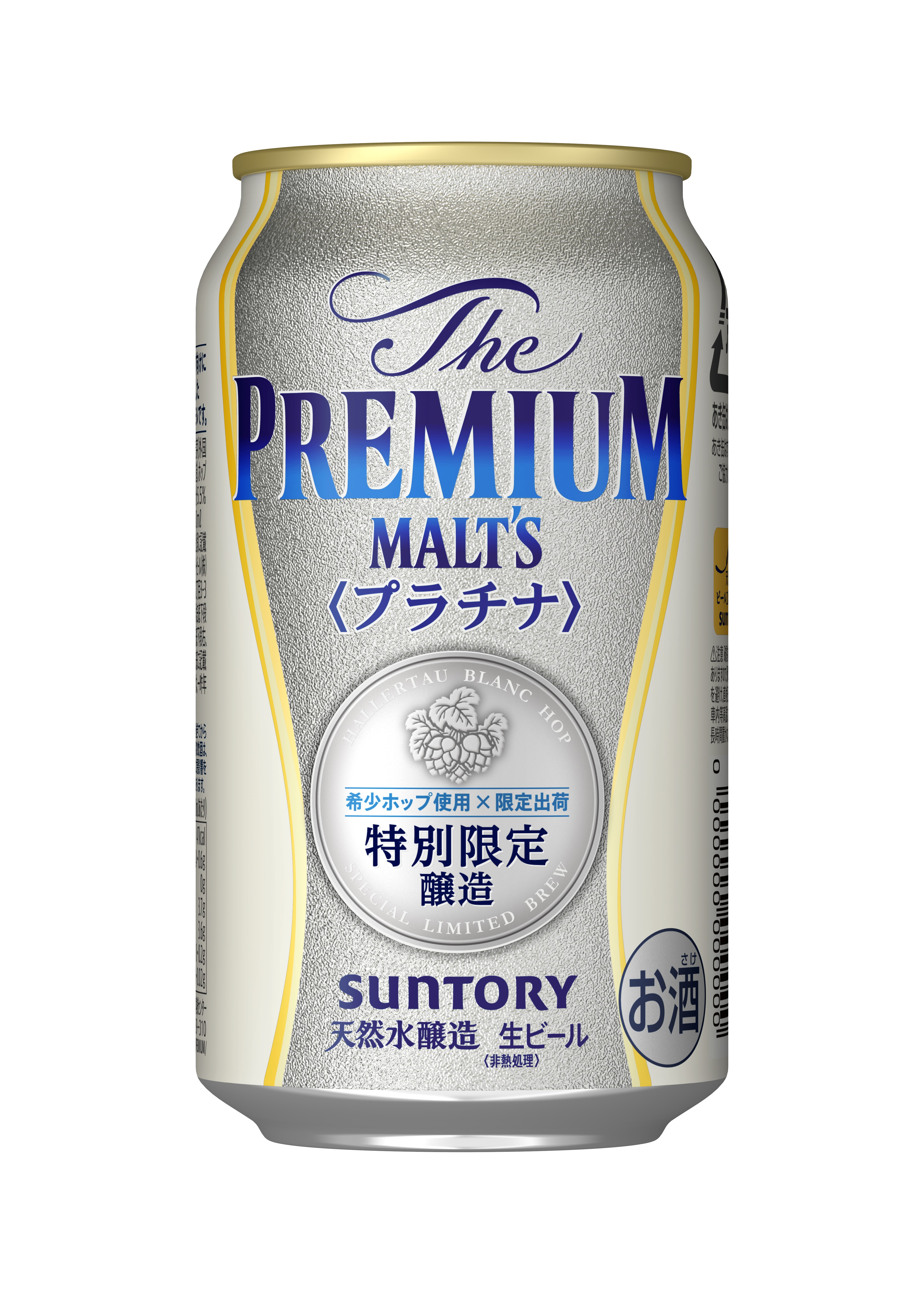 「ザ・プレミアム・モルツ」のこだわりである「ダイヤモンド麦芽」、「天然水醸造」に加え、白ワイン様(よう)の香りが特長の希少な「ハラタウブランホップ」を使用することで、気品ある香りと柔らかなコクを実現しました。パッケージは、「ザ・プレミアム・モルツ」の洗練されたデザインをベースに、白金(プラチナ)のタンブラーをモチーフとすることで、年末のご褒美にふさわしい高級感を表現しました。