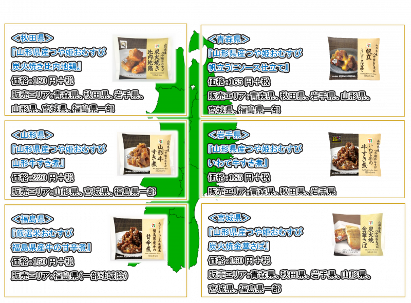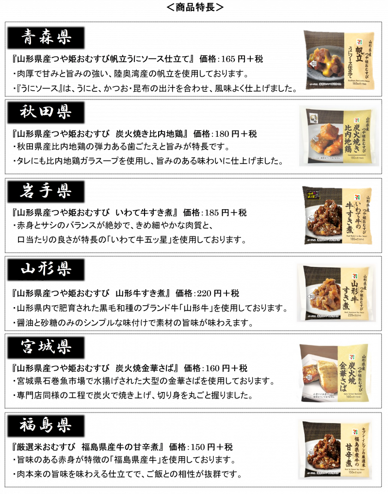 「つや姫おむすびシリーズ」から東北6県産中具使用のおにぎりを発売