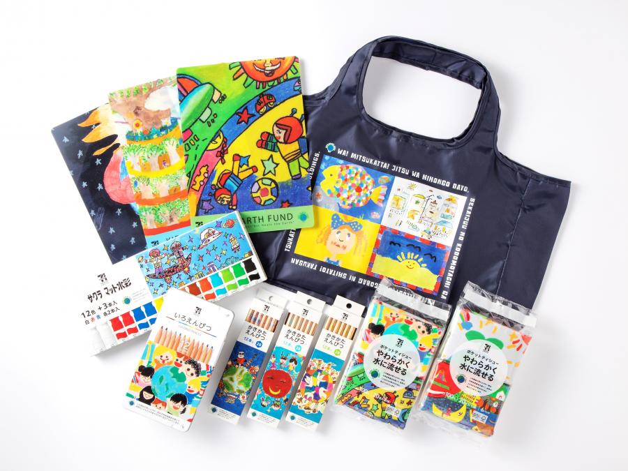 子どもたちが描いた絵をデザインに使用したオリジナル商品を共同企画