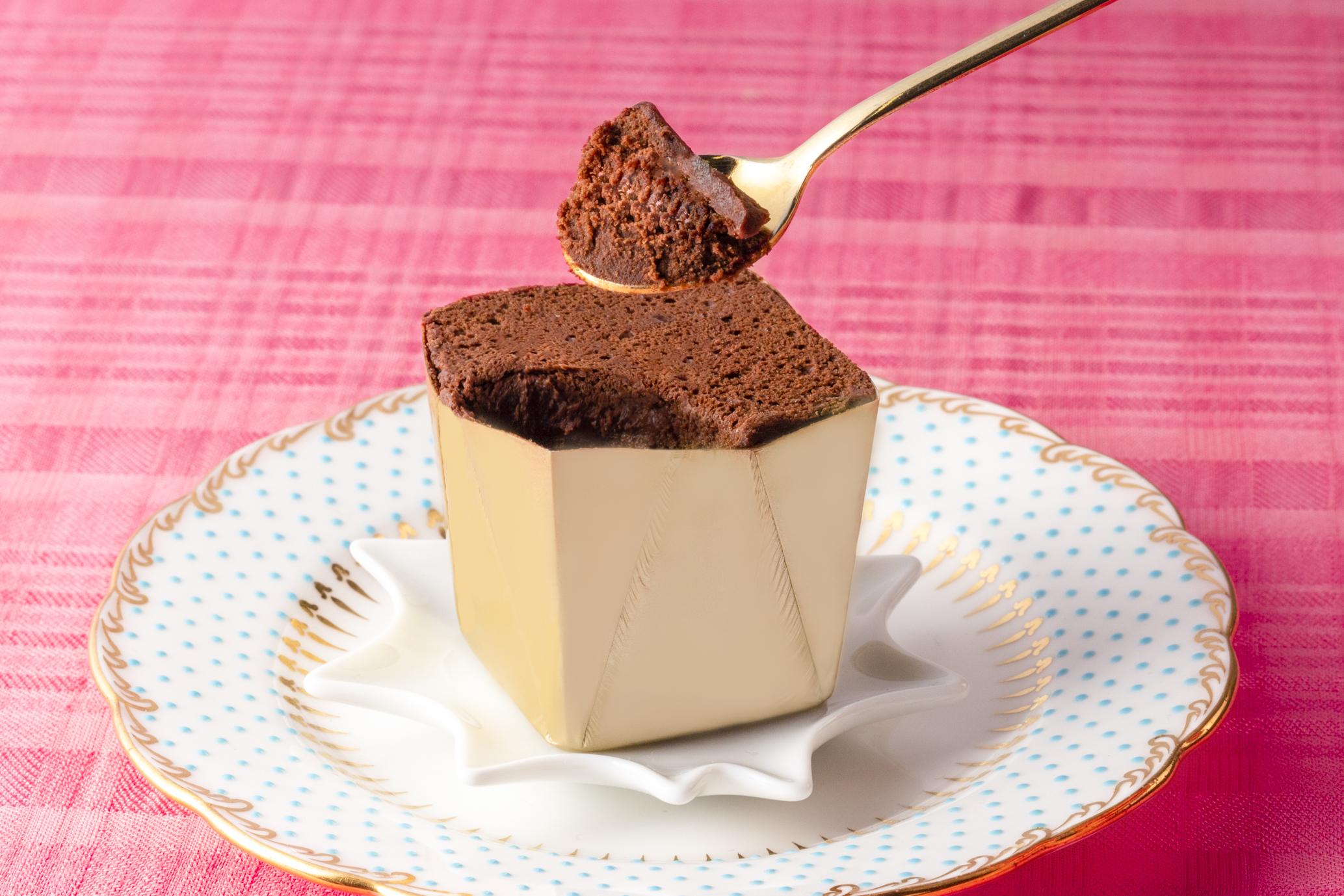 ・炭火焙煎クーベルチュールをブレンドしたショコラを炎でとろとろ焼き蒸すことで、ふわっととろける口どけが楽しめます。