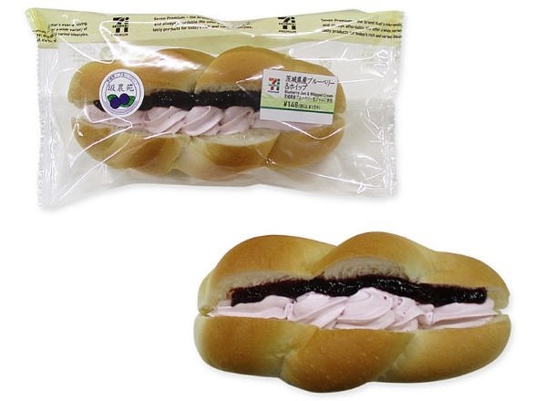 ・茨城県かすみがうら市の坂農苑のブルーベリーをジャムに仕立て、ブルーベリーのホイップクリームとともに、しっとりソフトな食感のパン生地で挟みました。