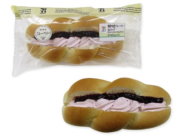 ・福島県棚倉町産のブルーベリーをジャムに仕立て、ブルーベリーのホイップクリームとともに、しっとりソフトな食感のパン生地で挟みました。