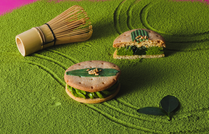 特長:しっとりとしたクッキーに、くちどけの良い宇治抹茶チーズクリームと濃厚な宇治抹茶ソースを挟みました。
