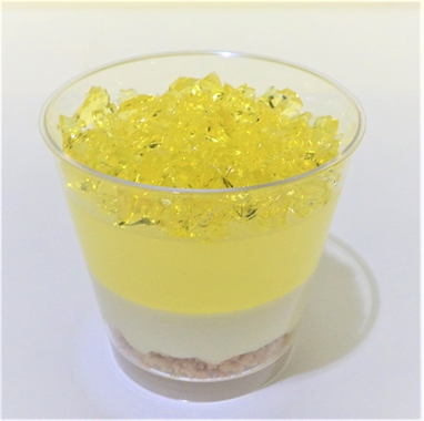・高知県産の文旦果汁を使用したクラッシュゼリーを盛り付け。