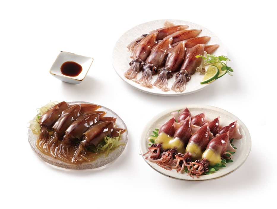 富山湾産ほたるいかを、刺身・醤油漬け・釜上げの食べ比べセットです。