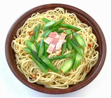 ・アスパラ、小海老、スパゲティを、マヨネーズやマスタード等を使用した地域に好まれる味わいのソースで和えました。