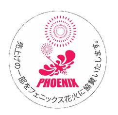 「復興祈願花火フェニックス」協賛商品にはこのシールが添付されています