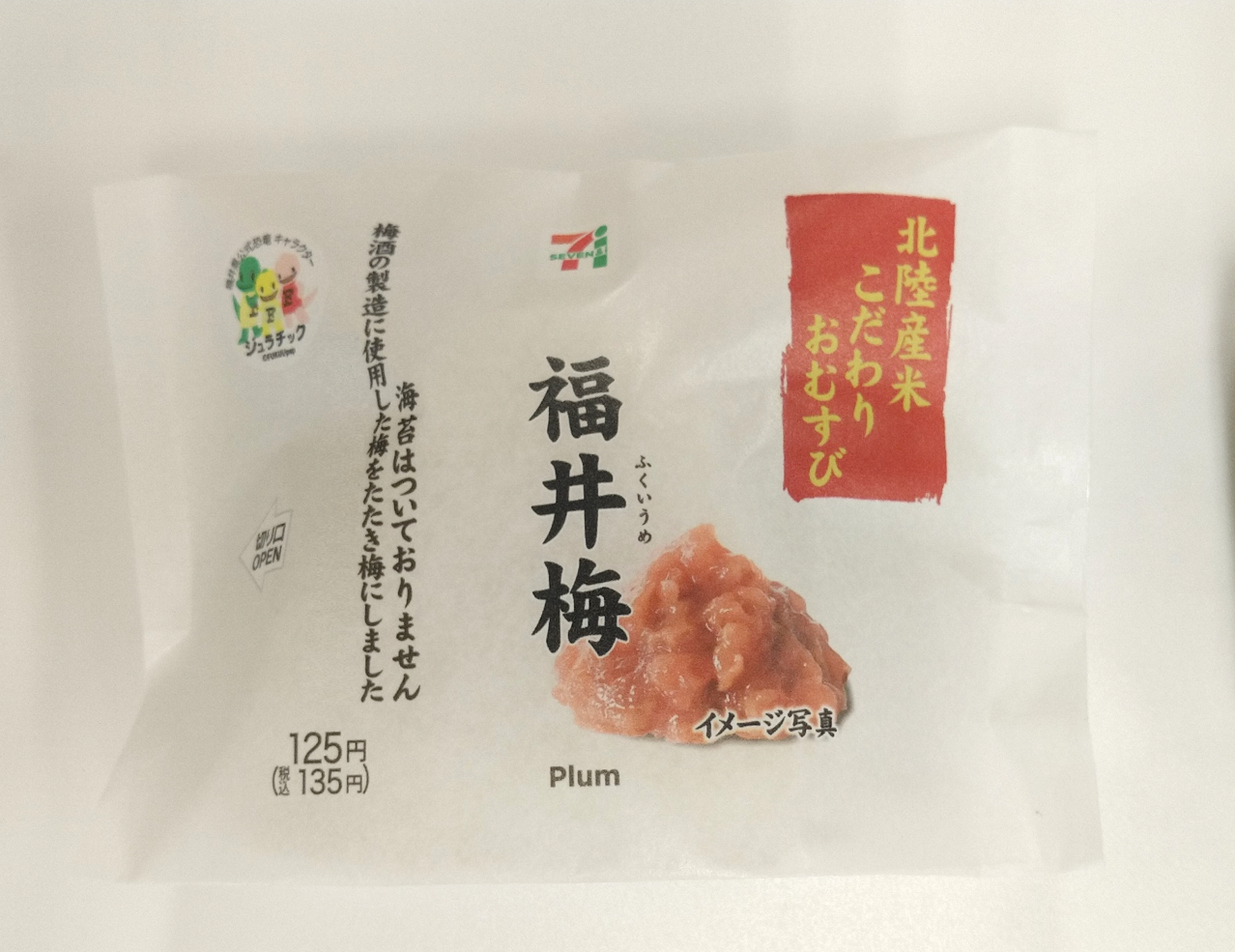 特長:希少性の高い「紅映梅」という品種の梅を使用。紅映梅は旨味とまろやかさが特長の梅。梅酒に漬けた梅をたたき梅にし、おむすびの中具に使用しました。酸味と旨味がバランス良く味わえる、北陸産のお米を使用した梅のおにぎりです。