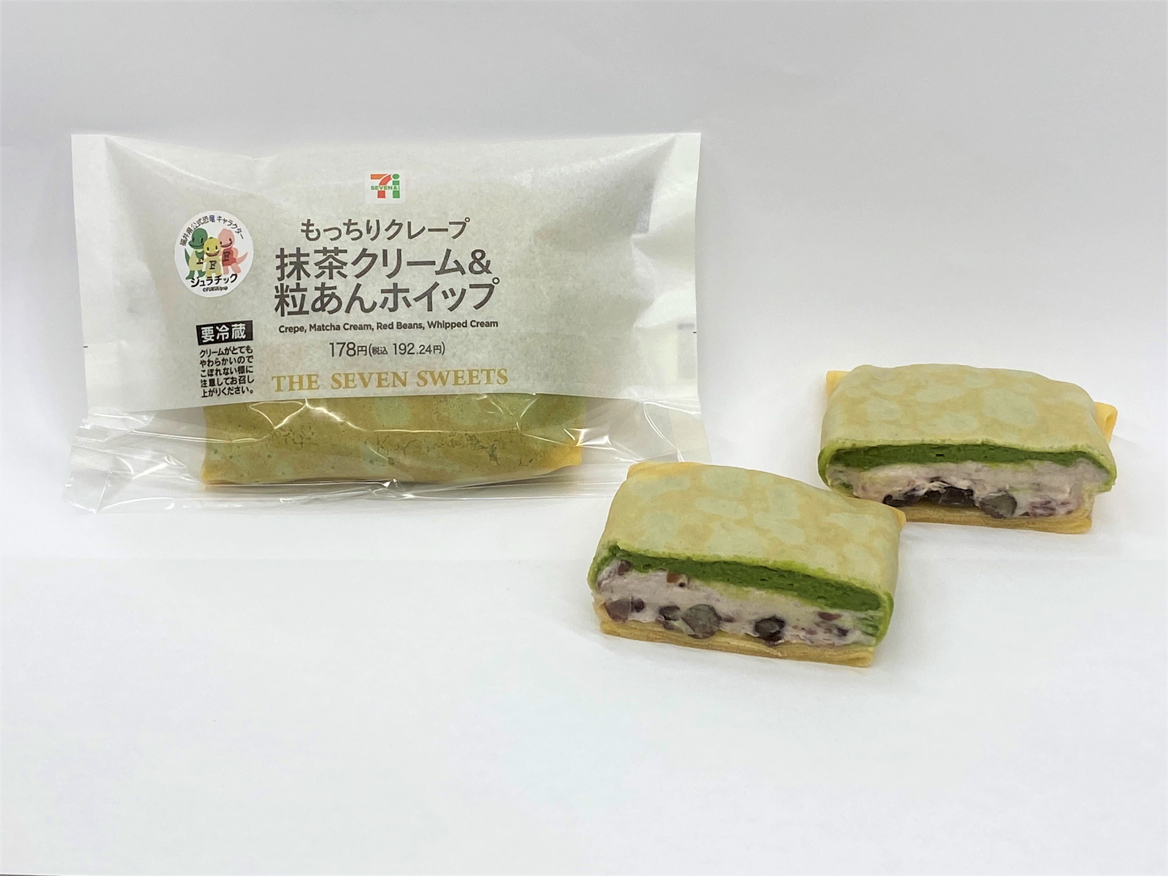 特長:福井県で人気の高い和菓子を洋菓子のクレープにアレンジした商品。濃厚な抹茶クリームと粒あんホイップをもちもちの