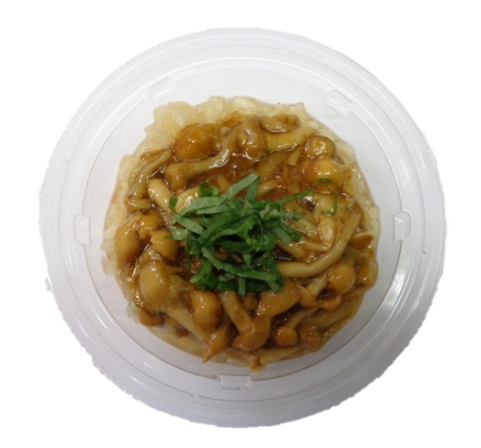 特長:福島県郡山市で生産されたなめこと、食感よく食べられる粗おろしにした大根を組みあわせた商品。