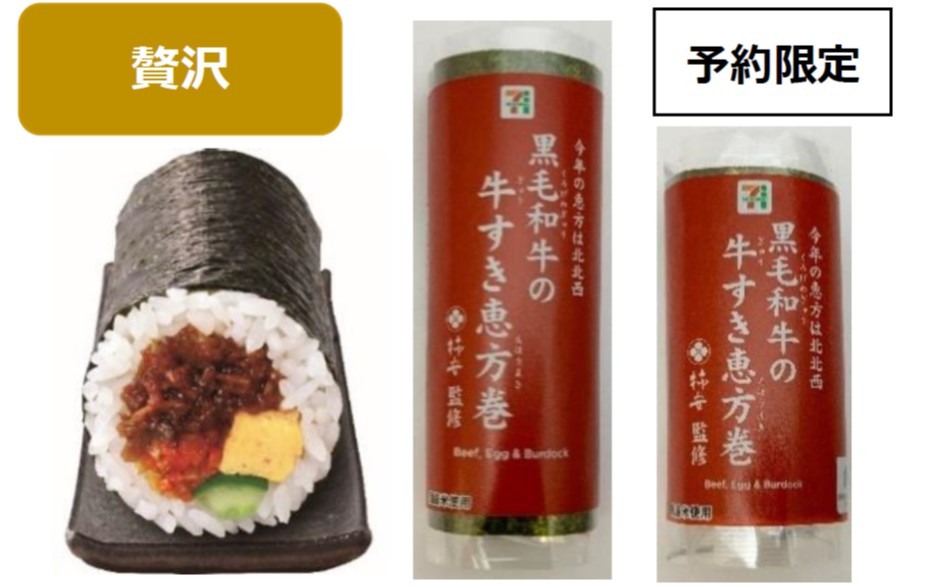 特 長:150年の歴史を誇る肉の老舗「柿安」監修の牛すき煮を具材にした、贅沢な味わいの恵方巻。