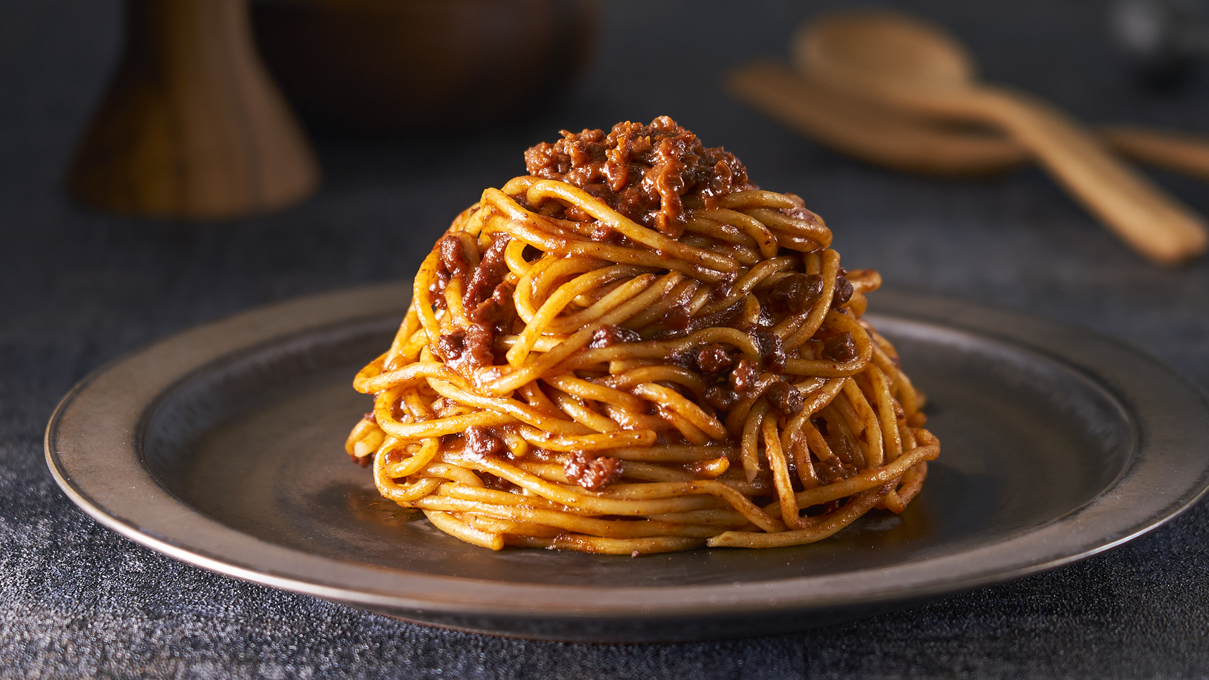 挽肉をしっかりと炒め、肉の旨味を十分に引き出してから赤ワインと一緒に煮込み、ワインの旨味を凝縮させた「濃厚ボロネーゼソース」に生クリームを使った「ベシャメルソース」を加え、温めた時に香りと味のコントラストが出る仕立て。