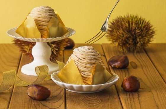 特 長:渋皮付きのイタリア栗を使用したこだわりのマロンペーストを中心に、口どけの良いホイップクリームとマロンホイップで包みました。