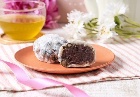 特 長:国産の餅米である「みやこがね」を使用した餅生地で、北海道十勝産のエリモショウズを使用した餡子を包みました。食べ応えのある商品です。