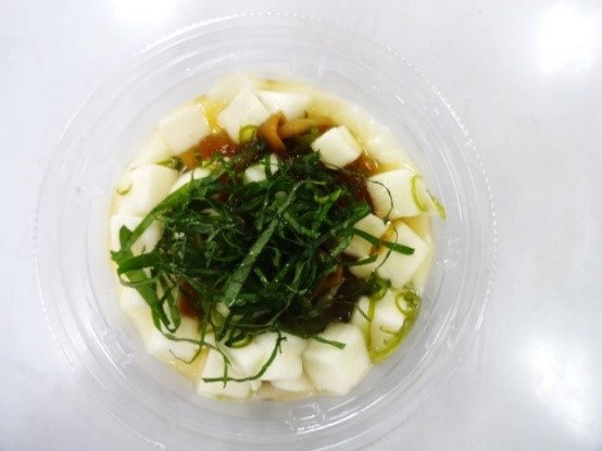 ・サイコロ状の『ねばりっこ』を、なめこ、めかぶ、しそと混ぜてお召し上がりいただく商品です。