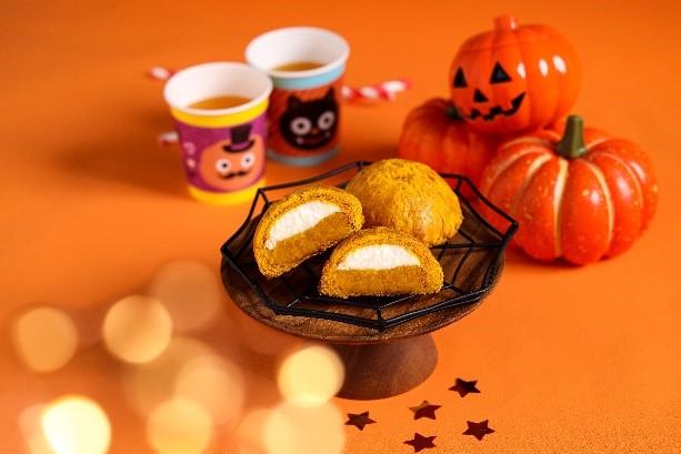 ◆特 長:かぼちゃ餡と乳のコクが味わえるホイップクリームを、サクサクのパイ生地で包みました。