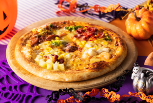 ◆特 長: 外はさっくり、中はもっちりとした生地にシーフード・ソーセージ・テリヤキチキン・ベーコンポテト人気の4種の具材を1枚にトッピングしました。