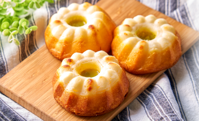 ・宮城県の有名スポット「蔵王のお釜」をイメージしたチーズシフォンケーキです。