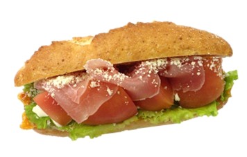 ・トマトの他に、玉ねぎやリーフレタスをパンにはさんだ、野菜をたっぷり味わえる商品です。