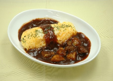 「オテル・ドゥ・ミクニ」などのオーナーシェフで、北海道増毛町ご出身の三國清三シェフ監修商品。赤ワインやバターを使用したコクのあるビーフシチューと、オムライスを合わせました。