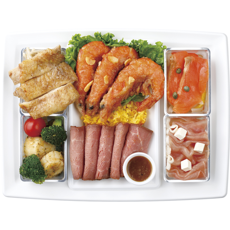 クリスマスを彩る華やかなオードブルです。ガーリックシュリンプやローストビーフ、ハーブチキンなど、人気のメニューをバランスよく盛り付けた食べ応えのある商品です。