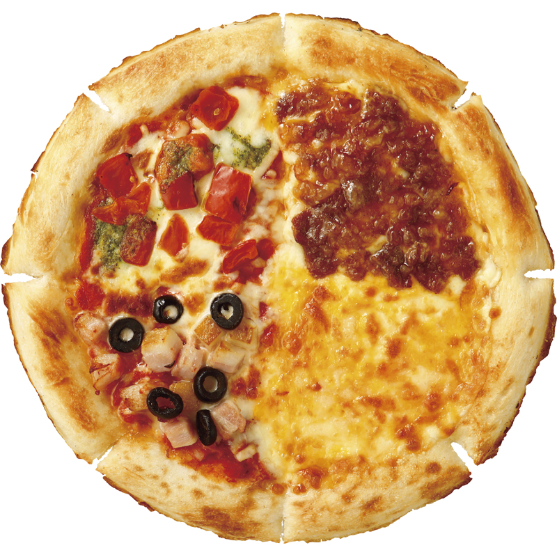 小麦の風味が香ばしくもっちりとした生地に、4種類の具材を乗せました。マルゲリータ、4種類のチーズ、甘辛いプルコギ、ベーコンの4つの味をお楽しみください。