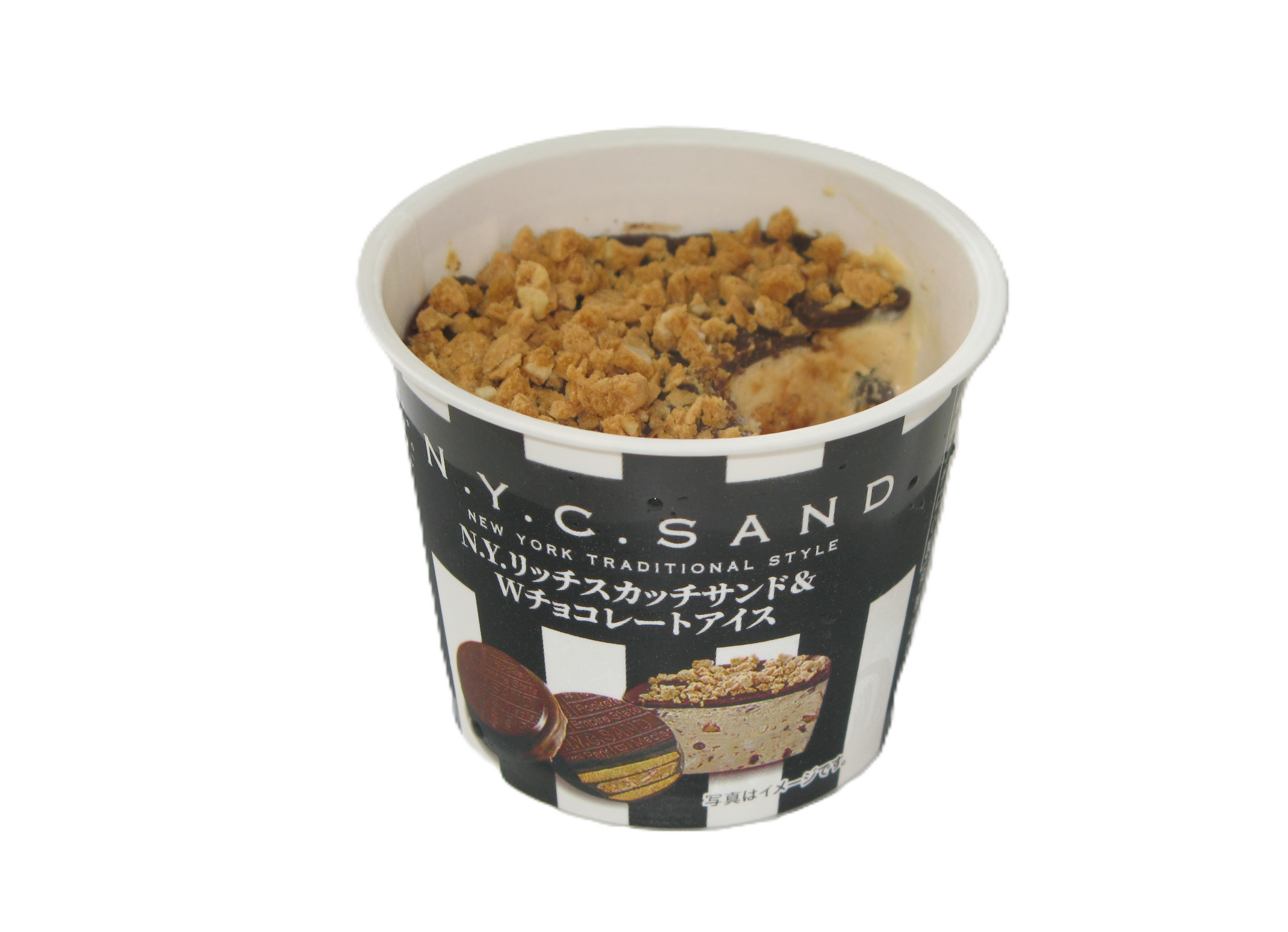 さらに、人気商品の「N.Y.リッチスカッチ&Wチョコレート」をイメージにしたカップアイス「N.Y.C.SAND N.Y.リッチスカッチ&Wチョコレートアイス」を発売。表面をチョコレートとアーモンドクランチで覆ったキャラメルアイスの中に、キャンディングアーモンドやチョコチップなど5種類の素材を散りばめました。ひと口ごとに異なる食感と香りを奏でる満足度の高い一品です。